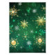 Navidades verdes de fondo con copos de nieve de oro y joyas verdes. Copos dorados de nieve. Navidad.