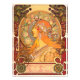 Alphonse Mucha - Zodiac, 1896. En esta composición, Mucha incorporó doce carteles de zodiaco en el disco tipo halo detrás de la cabeza de la mujer, uno de los motivos habituales de Mucha. La majestuosa belleza de la mujer se enfatiza por su majestuoso porte y sus elaboradas joyas. Alfons Maria Mucha (1860-1939), conocida internacionalmente como Alphonse Mucha, fue pintor, ilustrador y artista gráfico checo. Viviendo en París durante el periodo Art Nouveau, era ampliamente conocido por sus posters teatrales con estilo distintivo y decorativos, particularmente los de Sarah Bernhardt. Produjo ilustraciones, anuncios, paneles decorativos, así como diseños, que se convirtieron en las imágenes más conocidas de la época.