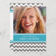 Personalizado Photo 16th invitaciones a la fiesta de cumpleaños en el elegante y moderno azul verde azulado, carbón vegetal gris y blanco diversión y chevron casual zigzags de rayas. Añade tu nombre, foto y detalles del fiesta para una invitación única y elegante a la fiesta de cumpleaños.