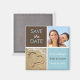 Foto de bloques de color azul y marrón Guardar los imanes Date, con tu elección de 1 o 2 fotos. Deja la foto de abajo como está, si lo deseas. Diseño de bloques de color Guay en azul y marrón. Introduzca su información en nuestra plantilla fácil de usar.