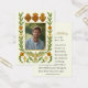 Tarjeta de plegaria funeraria católica con Tres Corazones de Jesús, María y José encima de un marco fotográfico, adornado con marigolas, cruces doradas y el Espíritu Santo como paloma de abajo. Una manera reverente de conmemorar el alma de un ser querido con imágenes católicas tradicionales. Personalizable con el nombre, fecha y oración de su elección. Ideal para los días festivos, confort espiritual y recuerdo eterno.