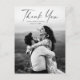 Tarjeta de agradecimiento de boda con foto de guión moderno. Los colores se pueden cambiar. La parte posterior incluye un mensaje genérico de agradecimiento que puede personalizar para cada invitado o eliminarlo por completo si prefiere escribir su agradecimiento a mano.