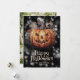 Foto personalizado tarjeta de Halloween con una calabaza acuática en la parte delantera y una foto en la parte trasera. Personaliza fácilmente esta tarjeta de fotos de color agua de Halloween con tu foto y el nombre de la familia. Esta espeluznante tarjeta de Halloween se puede convertir en cualquier color utilizando la herramienta de personalización.