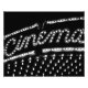 Fotografía en blanco y negro de una marquesina de teatro con un cartel de cine.