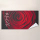 Foto macro de una bella rosa roja sobre fondo negro con efecto grano vintage con monograma personalizable personalizado.