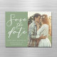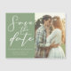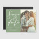 Esta sencilla tarjeta magnética Save the Date de color verde sabio sólido presenta un elegante guión blanco para una ceremonia al aire libre en un entorno natural. Tipografía minimalista sobre imanes pacíficos de color verde claro para un local rústico afuera de un bosque de árboles.