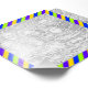 Imprima su foto con un "marco" de rayas diagonales brillantes de verde amarillo, púrpura, dorado y azul para añadir color a sus proyectos de scrapbooking. Elige "personalizar" si necesitas reubicar la foto dentro de este diseño colorido.