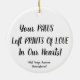 Adorno de foto de mascota con tipografía. Presentamos un encantador adorno redondo de cerámica, diseñado para sostener la foto de tu querida mascota con facilidad. Simplemente sube una foto en pasos rápidos y fáciles. La parte posterior de este adorno presenta la escritura conmovedora: "¡Tus HUELLAS dejaron MARCAS de AMOR en nuestros corazones!" Celebrando el vínculo especial que compartes con tu amigo PELUDO durante esta temporada navideña.