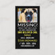 Fotografía personalizada, Tarjetas Mascotas perdidas, perdidas, por la Tienda de tarjetas de visita. Estas tarjetas tienen la misma información impresa en ambos lados de la tarjeta por una muy buena razón. ¿Entregarlos de puerta en puerta? Entonces, no importa el lado en el que llegue la tarjeta cuando se la ponga a través de un buzón, el destinatario se asegurará de verla. ¿Ponerlo en un escaparate? Luego la información de esta tarjeta se verá dentro y fuera del local. Estas tarjetas también son muy valiosas para el dinero ya que vienen en paquetes de 100. Perfecto para todo tipo de mascotas perdidos, perros, gatos, pájaros, conejos, etc.