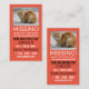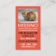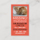 Fotografía personalizada, Tarjetas Mascotas perdidas, perdidas, por la Tienda de tarjetas de visita. Estas tarjetas tienen la misma información impresa en ambos lados de la tarjeta por una muy buena razón. ¿Entregarlos de puerta en puerta? Entonces, no importa el lado en el que llegue la tarjeta cuando se la ponga a través de un buzón, el destinatario se asegurará de verla. ¿Ponerlo en un escaparate? Luego la información de esta tarjeta se verá dentro y fuera del local. Estas tarjetas también son muy valiosas para el dinero ya que vienen en paquetes de 100. Perfecto para todo tipo de mascotas perdidos, perros, gatos, pájaros, conejos, etc.
