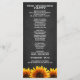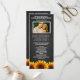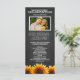 Fotografía Rustic Chalkboard Programas de Bodas de Girasol - presenta un fondo de pizarra con girasoles en la parte inferior de la parte delantera y trasera. Este diseño le permite cambiar la foto de demostración a la suya.