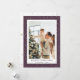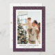 Sencillas tarjetas de Navidades de fotos personalizado púrpura con nieve en caída, copos de nieve y estrellas. Personaliza fácilmente esta tarjeta de Navidades de fotos con tu imagen favorita, un nombre de familia y texto.