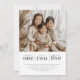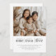 Una moderna invitación conjunta de cumpleaños con su propia foto y 3 secciones para el nombre y la edad de cada niño.