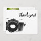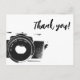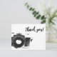 No olvide agradecer a sus clientes su reciente sesión de boda de fotografía. Una nota de gratitud hace mucho, un servicio de atención al cliente memorable puede llevar a remisiones, gestos excepcionales y reflexivos lo mantienen en la cabeza. Esta moda y moderna tarjeta de agradecimiento incluye una representación de cámara con un guión moderno de "gracias" y una forma de personalizar de un mensaje personal y sincero, nombre de negocio, sitio web (borrar si no es aplicable), dirección de retorno, además de un lugar para una foto de la novia y el novio que fotografiaste.