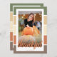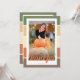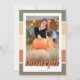 Autumn Color Block Thankful Photo Fanksending Greeting Card o Invitación a la cena. Colores de caída rústicos enmarcan una foto con una tipografía de escritura sobredimensionada frente al bloque de fotos. Mensaje inverso "Enviando desde nuestra casa a ustedes cálidos y afectuosos deseos". O edita para personalizar tu propio mensaje o invitación a cenar. Descarga digital disponible.