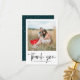 Tarjeta de agradecimiento con puntos azul turquesa y blancos modernos y escritura a mano alzada.