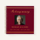 Un libro de invitados para un funeral o funeral. Un fondo burdeos, un marco dorado falso en la parte delantera. Personalice y agregue una foto, nombre y fechas.