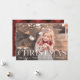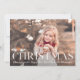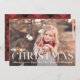 Invitación de foto de vacaciones de Navidad con tipografía de Navidad y su nombre en texto blanco en un cuadro de plaid rojo de búfalo festivo.
