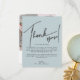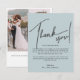 Moderna tarjeta de agradecimiento de caligrafía con mensaje personalizado de boda. 3 fotos en la parte posterior.