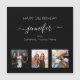 Una tarjeta de amigos para el cumpleaños 21 de una mujer (o cualquier edad), celebrando su vida con 3 de sus fotos de ella, sus amigos, familia, interés o mascotas. Personalice y agregue su nombre, edad 21 y sus nombres. Letras de color blanco. Un color de fondo negro clásico de moda. Su nombre está escrito con una escritura de estilo moderno con letras a mano con chispas. Para que los cambios sólo eliminen el nombre del ejemplo, deje los espacios o la emoji delante y después del nombre.