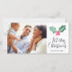 Esparza amor y alegría con esta elegante tarjeta de fotos contemporánea de vacaciones que dice "Feliz Navidad" en un elegante guión de caligrafía acentuado por nuestra flor de acuarela pintada a mano.