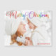 Hermosa tarjeta magnética de fotos navideñas con hermosa tipografía cursiva arco iris. Esta moderna tarjeta fotográfica familiar de vacaciones cuenta con magníficos y coloridos guiones superpuestos y tu nombre en rojo sobre la imagen completa de la sangre.