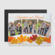 Esta hermosa y moderna tarjeta de imán de fotos de la familia del Día de Acción de Gracias incluye un collage de 3 fotografías bajo las palabras agradecidas y bendecidas. Esta elegante fotografía de hoja de otoño con madera blanca a la moda detrás de las hojas es una tarjeta de vacaciones magnética de moda para decorar con fotos de sus hijos.