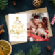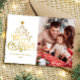 Fotos de la familia navideña Tarjeta navideña Te deseamos una Feliz Navidad! Esta tarjeta fotográfica de vacaciones muestra un mensaje clásico en forma de árbol de Navidad divertido sobre un fondo rojo. Con una foto en la parte delantera y otra en la parte de atrás, es una buena manera de enviar Navidades de ovación a amigos y familiares. El tratamiento tipo juguetón tiene forma de árbol de Navidad.