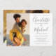 Con sus fotos especiales y nombres de estilo de firma, esta elegante invitación de boda en gris y blanco se puede personalizar con su información en tipografía gris chic. Diseñado por Thisisnotme©