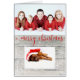 Moderno ilustracion de moda Navidades de vacaciones con un fondo rústico de madera y un guión de tipografía roja "Feliz Navidad" en el texto y copos de nieve y bokeh decorativos. Cambiar fácilmente las dos fotos de muestra con las propias.