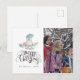 Tarjeta postal de foto de Navidad de pájaro de invierno en el bosque con tipografía manuscrita personalizable a sus especificaciones.