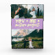 Recuerdo de boda caprichoso y divertido con 3 fotos de los recién casados con un texto tipográfico que dice "tú + yo = imagen perfecta". Wisteria limón.