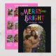 Celebra la temporada y destaca los mejores momentos de tu familia con esta tarjeta de foto de Resumen del año Alegre y Brillante. Con una paleta de colores audaces y coloridos en la parte frontal con letras "Alegre y Brillante", y un diseño de Resumen del año personalizable en el reverso. Perfecta para compartir recuerdos mientras envías alegría navideña. Un diseño moderno y alegre que es fácil de personalizar con el nombre de tu familia, año y fotos.