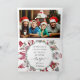"Gnomes Merry Little Navidades Typography Fotos Holiday Card". Adorables Navidades Gnomes en sombreros de Santa Gris y rojo con hojas huecas rodean el texto de la tipografía del guión que dice: "¡Tengan unos buenos Navidades!" Las fotos familiares son fáciles de subir con las plantillas de fotos. Adentro hay otra foto y tu mensaje completo. Arte de la artista con licencia internacional Audrey Jeanne Roberts, copyright.