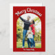 Luminoso y hermoso arco rojo con una foto de vacaciones de su familia dentro. Sencillas y modernas tarjetas de Navidad Merry con una fotografía vertical familiar en el arco.
