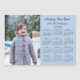 Envíe sus deseos de un Feliz Año Nuevo con una tarjeta magnética del calendario 2026 personalizada con su foto a la izquierda y su saludo y nombre encima del calendario a la derecha. Reemplace la imagen de ejemplo y el texto de la barra lateral. El texto del personalizado está escrito a mano en negro y genial. Debajo hay un calendario negro sobre un fondo azul claro. Para cambiar el color azul del bebé, puntee "Editar usando la herramienta de diseño" y seleccione un color de fondo en la barra lateral. Haga clic en "Listo" y luego en "Añadir al carrito" para comprar su imán de calendario personalizado. Derechos reservados © Claire E. Skinner sobre la plantilla de tarjeta magnética y el diseño de calendario. Todos Los Derechos Reservados. Fotografía © Storytree Studios, Stanford, CA