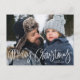 Postal de fotos de vacaciones con "Feliz Navidad" que aparece en la parte inferior de la tarjeta en un sobrepuesto de escritura manuscrita blanca. Personalice la original postal de los Navidades con su foto horizontal y su apellido. La tarjeta postal se invierte para mostrar la dirección de retorno, la foto adicional y el mensaje de personalizado.