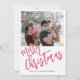 Moderna y alegre Festividad navideña navidad vacaciones de invierno familiar tarjeta de saludo de foto con moderno guion de caligrafía escrita a mano con pincel rosa brillante. Personalízalo con tu foto y tu texto en ambos lados!