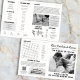 Crea un recuerdo significativo y memorable para tu día de boda con este programa de bodas al estilo de un periódico. Diseñado con elegancia intemporal, es la manera perfecta de compartir tu historia, guiar a tus invitados y celebrar tu amor en un formato creativo y atractivo. Este programa único destaca todos los detalles importantes de su celebración, incluyendo información sobre su ceremonia y recepción, para que sus invitados se sientan incluidos en cada paso del camino. Comparte la historia de tu viaje en pareja en la sección "Nuestra historia", y agrega un toque lúdico con una divertida búsqueda de palabras y entretenido "Hechos divertidos" sobre tu relación. Muestre su aprecio a sus seres queridos con características reflexivas como un mensaje de personalizable para la familia y amigos, una sección de "Guest Awards" para celebrar a los que hicieron especial su día, y un tributo de "In Loving Memory" para honrar a los que están con ustedes en espíritu. Para hacerlo aún más personal, resalte de dónde han viajado sus invitados (también hay un mapa oculto de los Estados Unidos en las capas de diseño). Editar en la herramienta de diseño para mover las posiciones de los pines, copiar y pegar para crear más. Presenta tu fiesta de bodas con estilo e incluye hermosas fotos de ti y de tu pareja para completar este conservador intemporal. Con su elegante diseño y diseño de personalizable en las herramientas fáciles de usar de Zazzle, este programa combina sofisticación y creatividad, haciéndolo perfecto para cualquier tema boda. Es más que un programa —es un recuerdo sincero que tus invitados apreciarán mucho después de que termine la celebración.