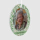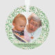 Personaliza este adorno de Navidad con dos fotos de tu ser querido a cada lado y texto de tus preferencias. El ilustracion William Morris es la frontera de madera de sauce verde.