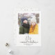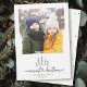 Sencilla tarjeta de festividad fotográfica moderna con un lindo y caprichoso guión que lee a NAVIDADES MERRIEST con una conexión cardiaca escrita a mano bajo una dulce escena de árbol dibujado con nieve. Espacio para su foto y mensaje personalizado. En la parte de atrás hay un patrón de puntos minimalistas de bonito.