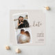 Estas tarjetas minimalistas de invitación de compromiso de 2 tiras fotográficas son la manera perfecta de presentar la fecha de su boda a sus amigos y familiares. Las tarjetas incluyen una tira de tus fotos favoritas y en un tipo de letra de guión "guardar la fecha" y los detalles de la plantilla del próximo boda. Los estilos de fuente, colores, tamaños y color de fondo se pueden cambiar haciendo clic en el enlace posterior del personalizar después de la personalización.
