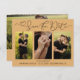 Modernas 4 fotos de matrimonio Guardar la plantilla de la tarjeta de invitación de fecha con información del sitio web y corazón lindo en el tipo de letra del guión en amarillo boho.