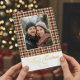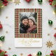 Comparte tu alegría navideña con esta carta rústica de ensueño de Feliz Navidad, con un acogedor fondo rojo, verde y dorado de bronceado y un marco de Relieve metalizado dorado en esquina redondeada para tu foto favorita de tu familia o pareja. Elegante guión de Relieve metalizado dorado en un suave fondo blanco ofrece sus saludos de vacaciones, mientras que su apellido agrega un toque personal. Creado por Simply Farmhouse Press.
