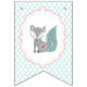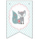 Esta bandera del empavesado de la fiesta de bienvenida al bebé ofrece un adorno floral con los zorros dulces del bebé y los pavos reales lindos, que se hacen adentro en tonalidades de la turquesa y del coral.