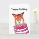 Este zorro siempre disfruta comiendo pastel de cumpleaños rosado.