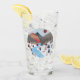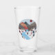 Un hermoso paisaje con texturas únicas que muestran un paisaje de río y montaña con un zorro en caza de salto medio en la nieve en tonos rojos, verdes, azules y beige.
