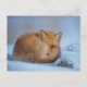 Esta postal muestra una foto de un zorro enrollado en la nieve.