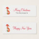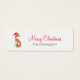 Una tarjeta de negocios delgada con un ilustracion naranja de zorro lindo. Lleva puesto un sombrero de santa roja y tiene acentos decorativos verdes festivos sobre su cola y sobre su pecho. Personaliza con tu nombre. Feliz Navidad y Feliz Año Nuevo escrito al frente y al revés. El texto se puede personalizar según sus necesidades.