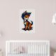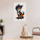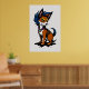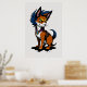 Un ilustracion personalizado de un zorro lindo con el pelo azul y un collar, de pie sobre un fondo blanco. El zorro tiene grandes ojos expresivos y una sonrisa lúdica. Este es un arte generado por IA.